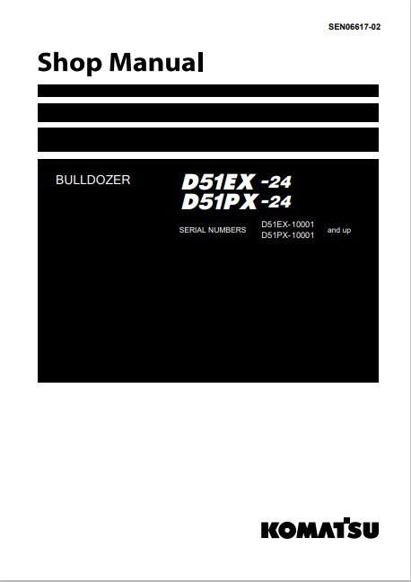 The Komatsu D51EX-24 and D51PX-24 Bulldozer Workshop Manual is an essential resource for operators and technicians, providing comprehensive guidance on maintenance, troubleshooting, and repair procedures. This manual is meticulously designed to enhance the performance and longevity of your bulldozer, ensuring that you can tackle any job with confidence. With detailed diagrams, step-by-step instructions, and valuable tips, this workshop manual empowers you to keep your equipment running smoothly and efficiently, making it a must-have for any Komatsu D51 series owner