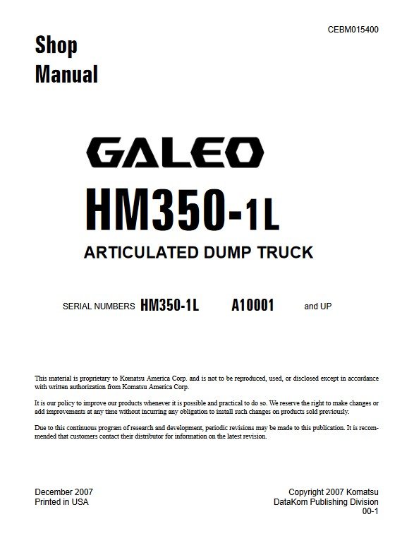 Komatsu HM350-1 USA Dump Truck Workshop Manual