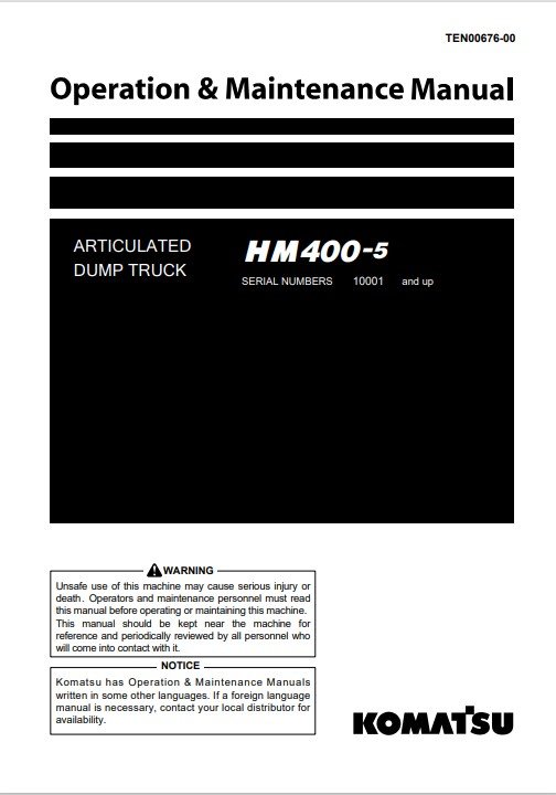Komatsu HM400-5 Japan Dump Truck S.N 10001-10154P Operation and Maintenance Manual