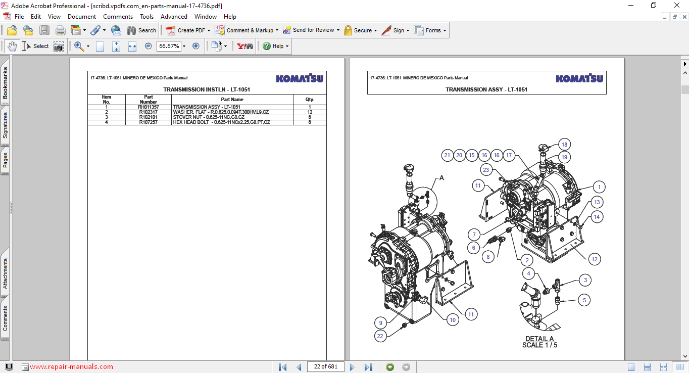 Parts manual for Komatsu LT1051 Wheel Loader, showcasing diagrams and specifications for efficient maintenance and repairsKomatsu LT1051 Wheel Loader Parts Manual