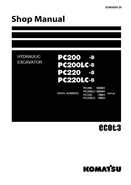 Komatsu PC200-8, PC200LC-8, PC220-8, PC220LC-8 Workshop Repair Manual