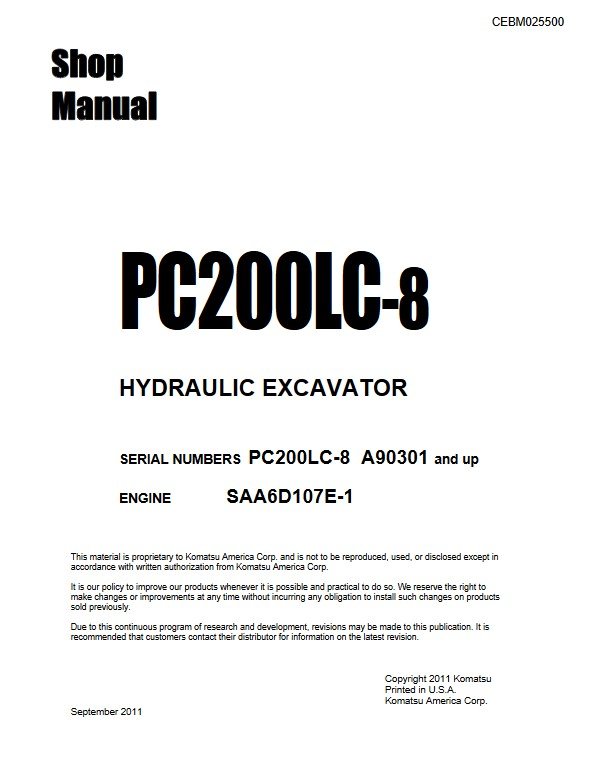 The Komatsu PC200LC-8 Excavator Workshop Repair Manual is an essential resource for professionals and enthusiasts alike, providing comprehensive guidance on maintenance and repair procedures. This manual features detailed diagrams, step-by-step instructions, and troubleshooting tips, ensuring that you can efficiently diagnose and resolve issues with your excavator. With its user-friendly format, this manual empowers you to keep your equipment in optimal condition, ultimately enhancing performance and extending the lifespan of your machine. Invest in this indispensable tool to ensure your Komatsu PC200LC-8 operates at peak efficiency