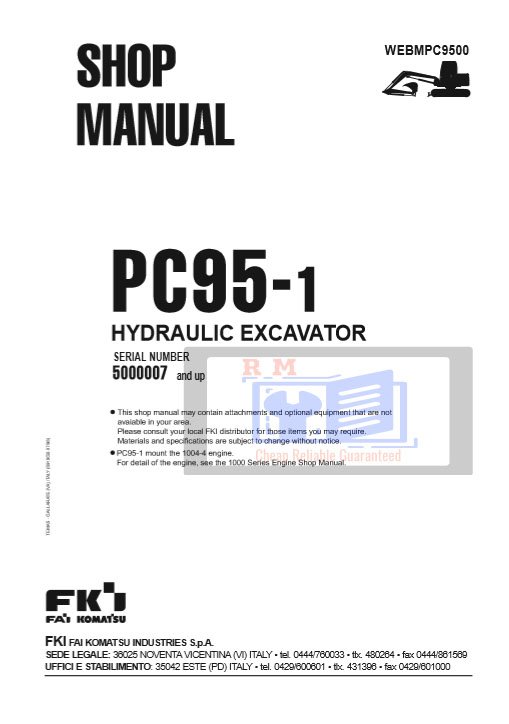 Whether you’re performing a quick service or a complete overhaul, this manual is your essential companion for maximizing the performance and longevity of your Komatsu PC95-1 Excavator