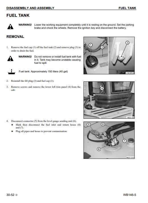 Komatsu WB146-5 USA Backhoe Loader Workshop Manual