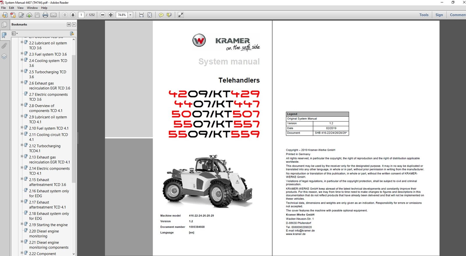- Models Covered: Wacker Neuson 5507, KT557 (Kramer) Telehandlers