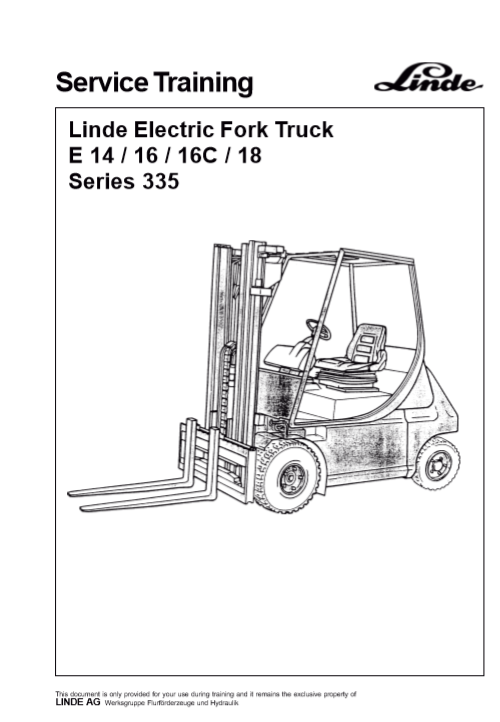 Linde E18 Electric Forklift Service Training Manual (Series 335)