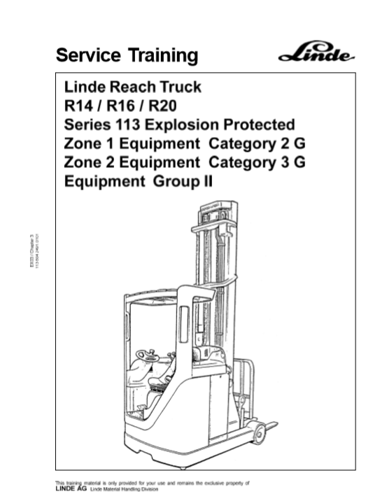 Lined Reach Truck R14, R16, R20 Series 113 Explosion Protected Service Training Manual