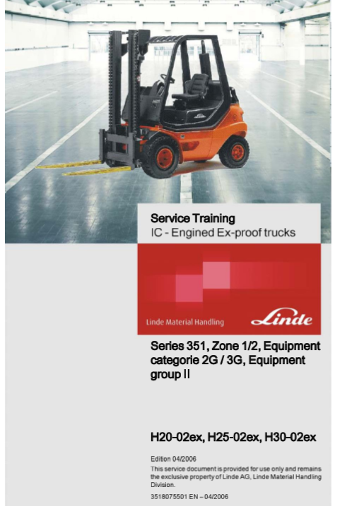 Linde H20-02ex, H25-02ex, H30-02ex Forklift Truck Service Training Manual