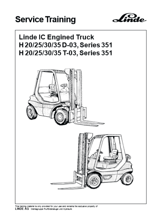 Comprehensive service training manual for Linde H20, H25, H30, and H35 forklifts, covering essential maintenance guidelinesLinde H20, Linde H25, Linde H30, Linde H35 Service Training Manual
