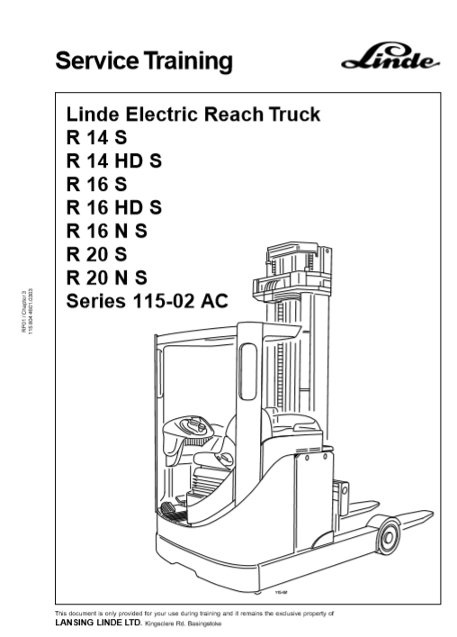 Linde R14S Electric Reach Truck (Series 115-02) AC Service Training Manual
