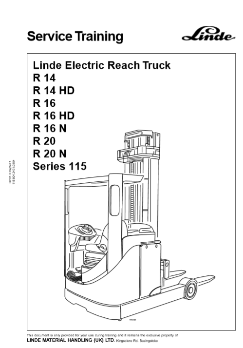 Linde R20 Electric Reach Truck Service Training Manual ( Series 115 )