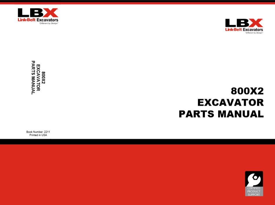 Link Belt 800X2 Excavator Parts Manual cover featuring detailed diagrams and parts listings for maintenance and repairLink Belt 800X2 Excavator Parts Manual