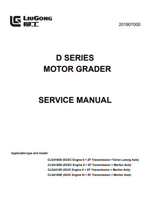 Compatible Model :Liugong D Series Motor Grader Service Repair Manual
