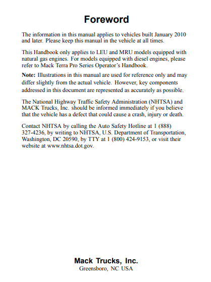 Mack Natural Gas (LEU, MRU) Operator’s Manual