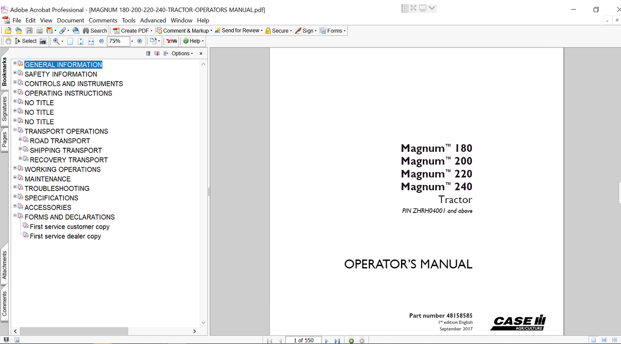 Increase the efficiency of farming with the manual manual of the operator of the case Magnum 200 tractor. This broad guide provides the necessary information on operation, maintenance and troubleshooting, and ensures that you get the most out of your powerful machinery. With clear instructions and wide charts, you can safely navigate your tractor properties, adapt to performance and expand your life. To strengthen your agricultural effort, invest in this manual and run Magnum 180 evenly