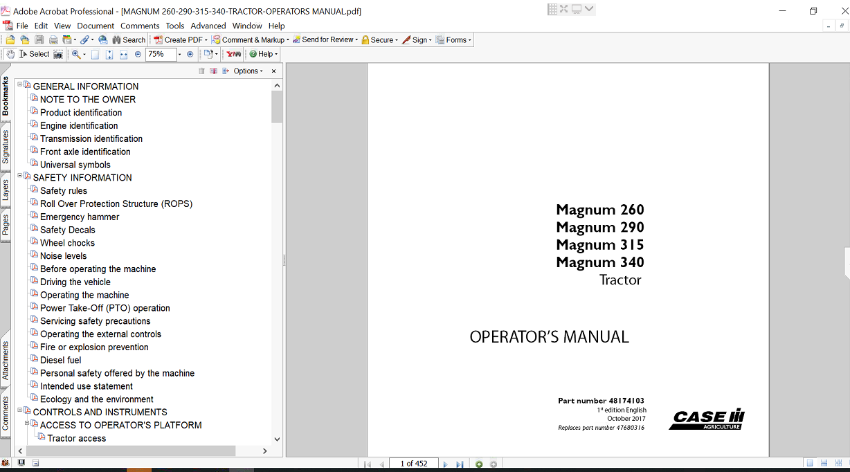 Enhance your operational efficiency with the Operator’s Manual for the Case Magnum 315 Tractor. This comprehensive guide provides essential information on the tractor’s features, maintenance, and troubleshooting, ensuring you maximize performance and longevity. With clear instructions and detailed diagrams, this manual is an invaluable resource for both new and experienced operators, empowering you to tackle any task with confidence. Invest in your productivity and keep your Case Magnum 315 running smoothly with this indispensable manual
