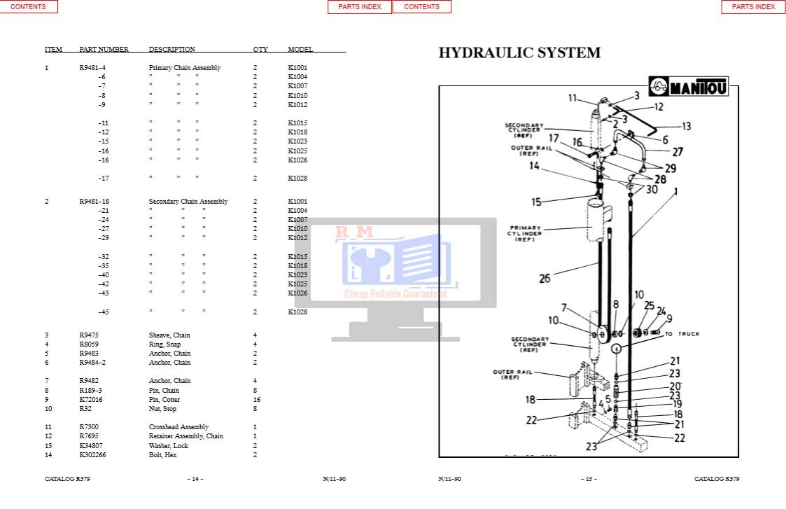 Manitou 1000 Series Parts Manual