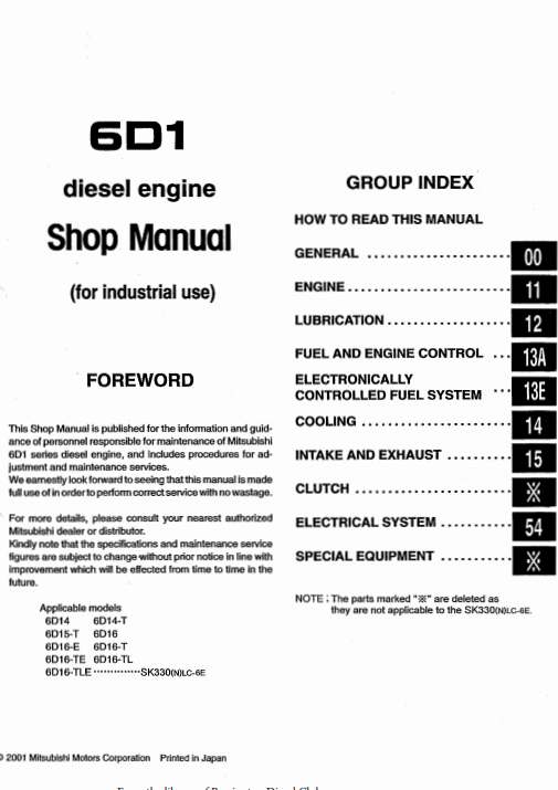 Mitsubishi 6D1 Series Diesel Engines Workshop Repair Manual