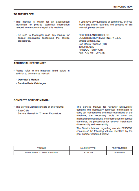 NEW HOLLAND E230CSR Excavator Service Repair Manual