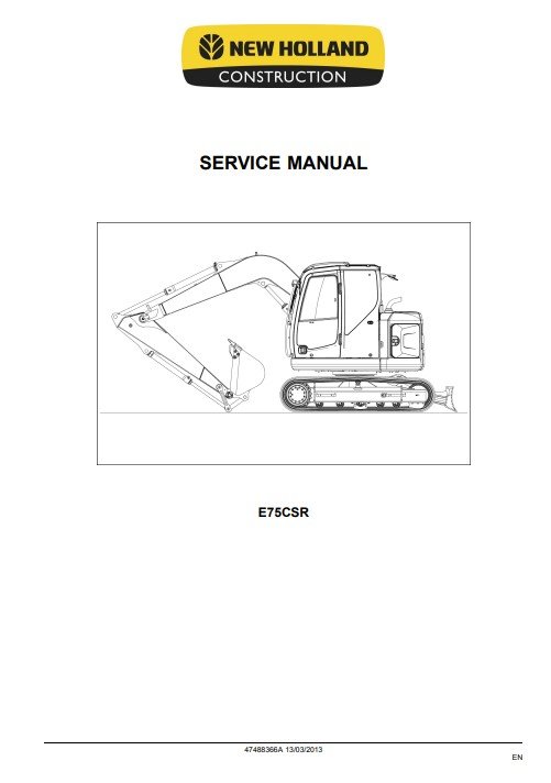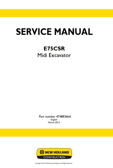 NEW HOLLAND E75CSR Midi Excavator Service Repair Manual