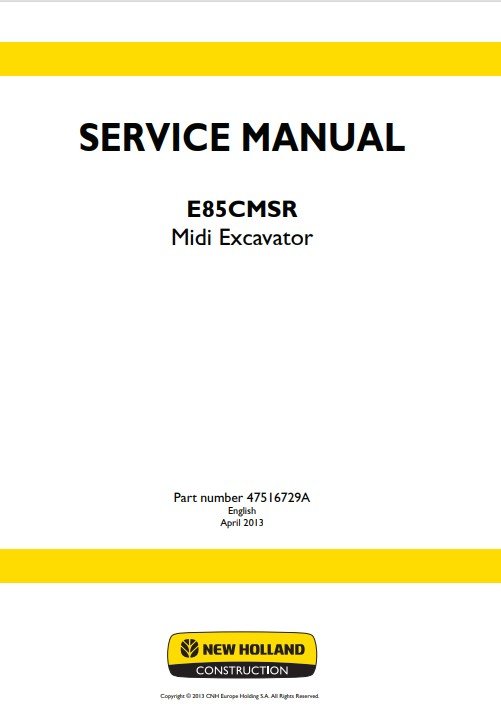 NEW HOLLAND E85CMSR Midi Excavator Service Repair Manual