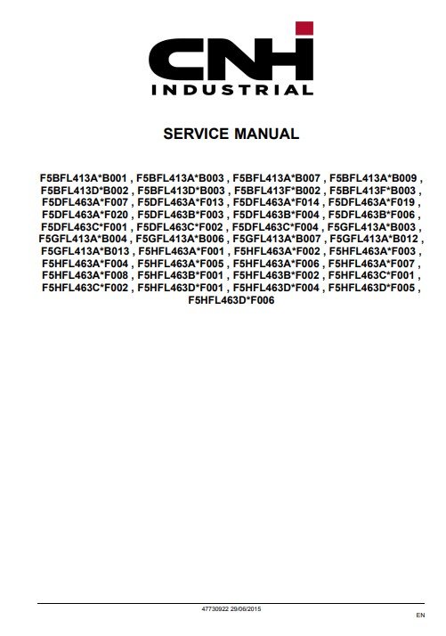 The NEW HOLLAND F5 Engine Service Repair Manual is an essential resource for anyone looking to maintain or repair their F5 engine with confidence. This comprehensive guide provides detailed instructions, diagrams, and troubleshooting tips, ensuring that you can tackle any issue efficiently. With its user-friendly format, this manual empowers both seasoned mechanics and DIY enthusiasts to perform repairs and service tasks effectively, ultimately saving time and money. Invest in this indispensable tool to keep your engine running smoothly and reliably for years to come