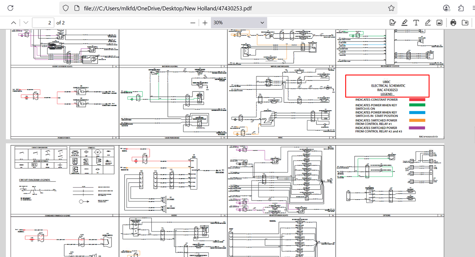 Take the guesswork out of electrical repairs with this official wiring diagram for the New Holland U80C Loader. This easy-to-read schematic is your go-to resource for troubleshooting, repairing, or modifying the electrical system on your U80C model.