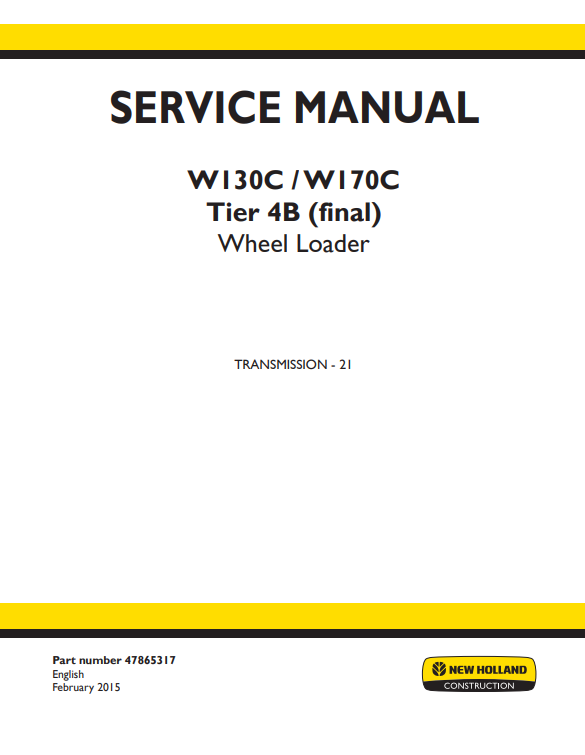 Service manual for New Holland W130C and W170C Wheel Loaders, including detailed instructions for operation and maintenanceNew Holland W130C, New Holland W170C Wheel Loader Service Manual