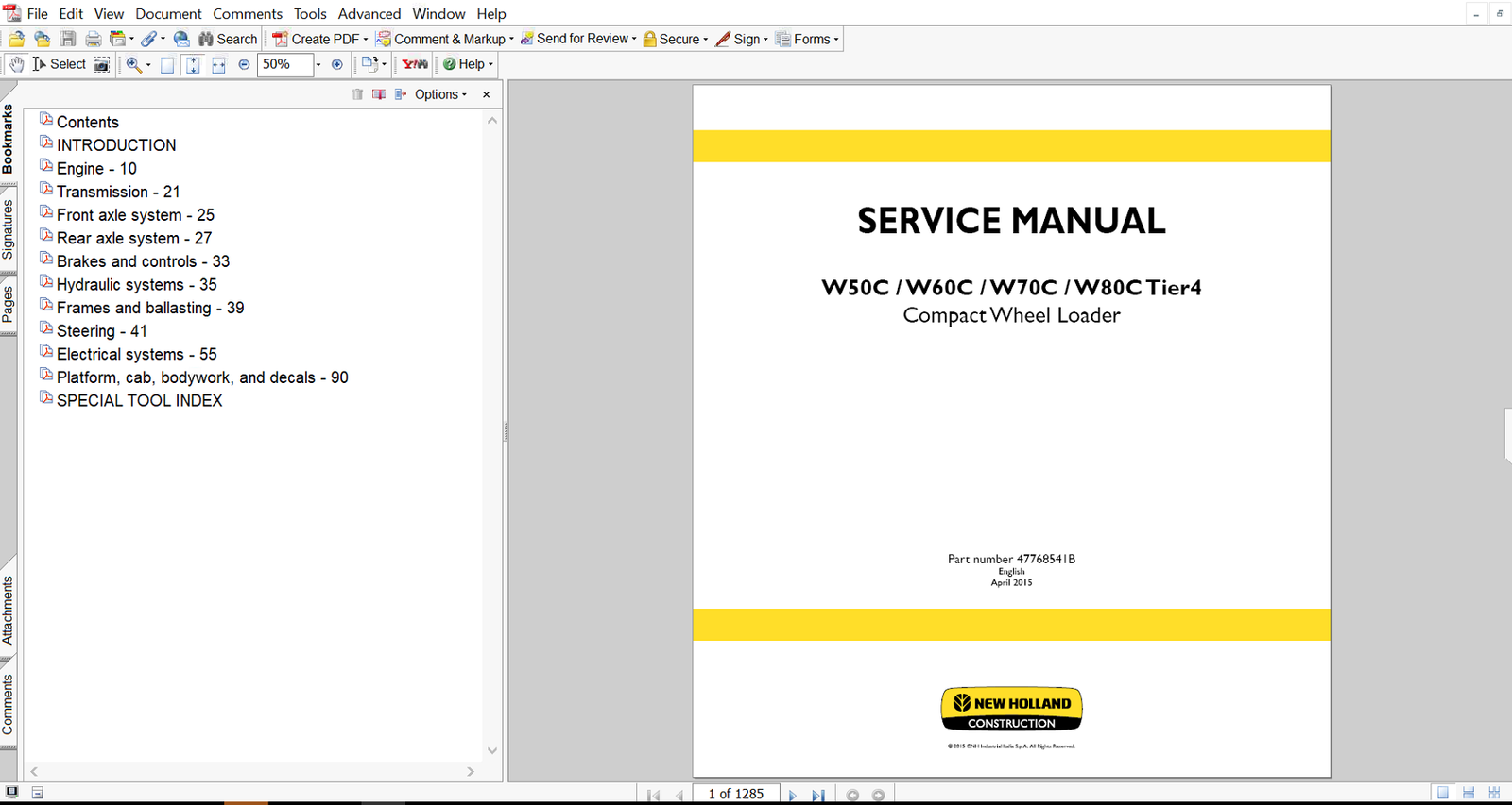 Whether you’re performing a quick service or a complete overhaul, this manual is your essential companion for maximizing the performance and longevity of your New Holland W50C Wheel Loader