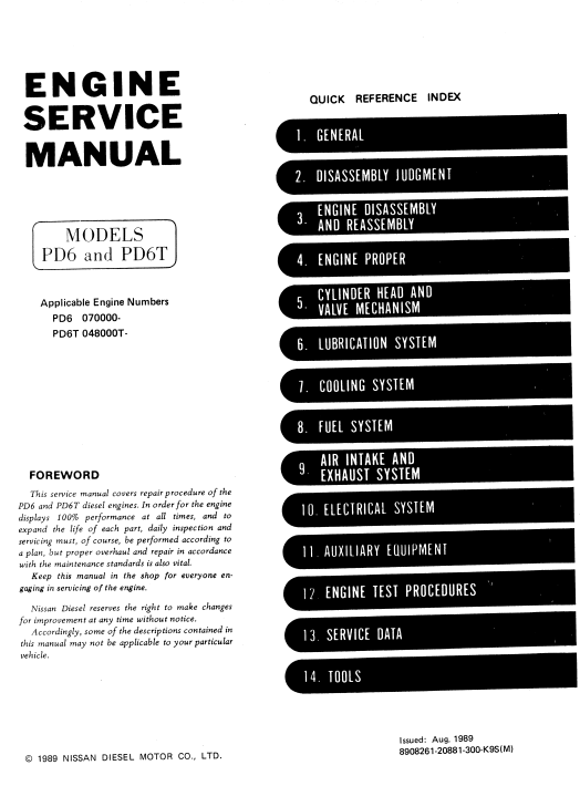 Nissan PD6 and PD6T Diesel Engine Service Repair Manual