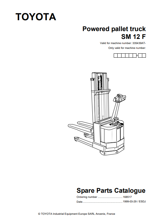 Toyota Powered pallet truck SM12F Spare Parts Catalogue