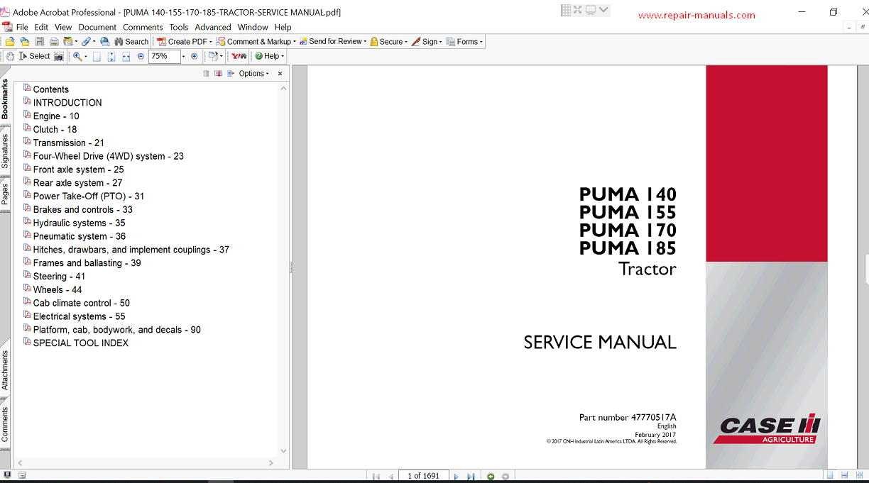 The Case IH Puma 170 Service Manual is an essential resource for any owner or technician looking to maintain and repair this powerful tractor. This comprehensive guide provides detailed instructions, diagrams, and troubleshooting tips to ensure optimal performance and longevity of your equipment. With clear, step-by-step procedures, you can confidently tackle maintenance tasks and repairs, saving time and money while keeping your Puma 140 running smoothly. Invest in this manual to enhance your understanding and care of your tractor