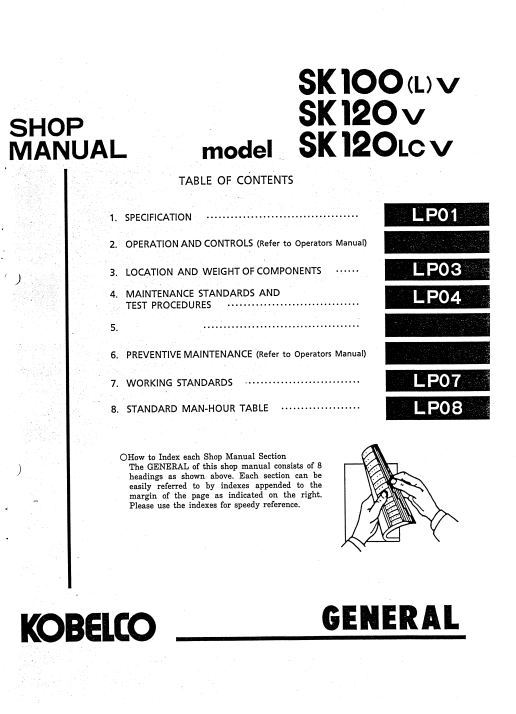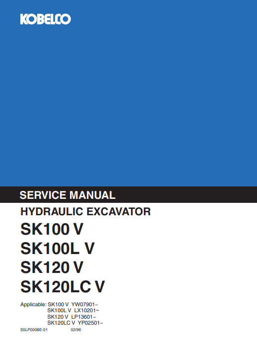 Kobelco SK100-V, SK100L-V, SK120-V, SK120LC-V Service Repair Manual