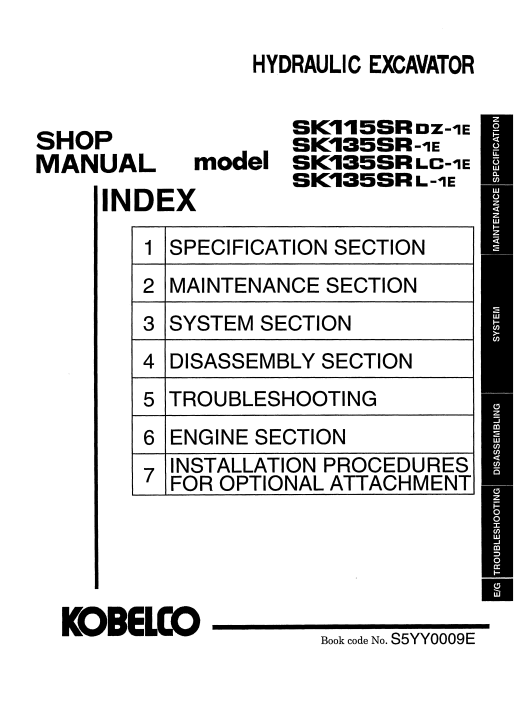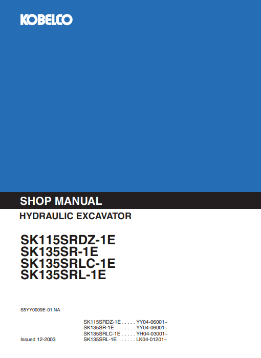Kobelco SK115SRDZ-1E, SK135SRLC-1E, SK135SRLC-1E, SK135SRL-1E Workshop Repair Manual