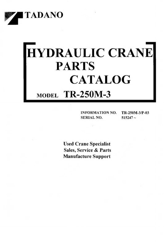 Tadano TR-250M-3 Crane Parts Manual