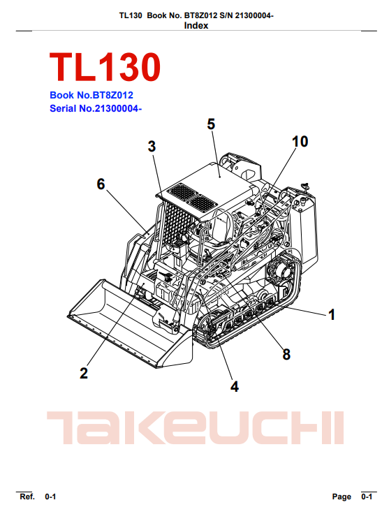 Takeuchi TL130 Track Loader Parts Manual