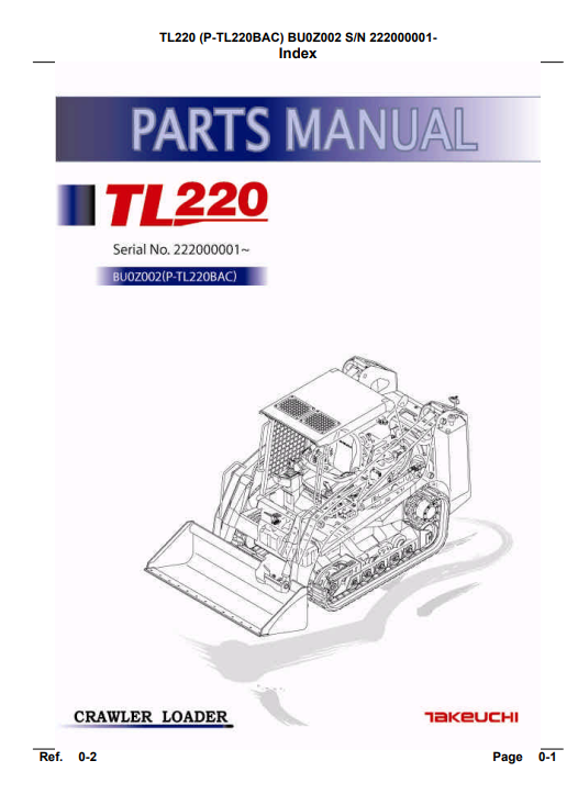 The Takeuchi TL220 Track Loader Parts Manual is an essential resource for anyone looking to maintain or repair their equipment with precision and confidence. This comprehensive manual provides detailed diagrams, part numbers, and specifications for every component of the TL220, ensuring that you can easily identify and source the right parts for your machine. With clear illustrations and step-by-step instructions, this manual simplifies the process of troubleshooting and repairs, allowing you to keep your loader operating at peak performance. Whether you are a seasoned technician or a DIY enthusiast, the Takeuchi TL220 Parts Manual is an invaluable tool that empowers you to extend the life of your equipment and minimize downtime, ultimately saving you time and money