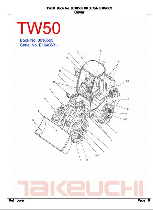 Comprehensive parts manual for the Takeuchi TW50 Wheel Loader, including diagrams and specifications for repairsTakeuchi TW50 Wheel Loader Parts Manual