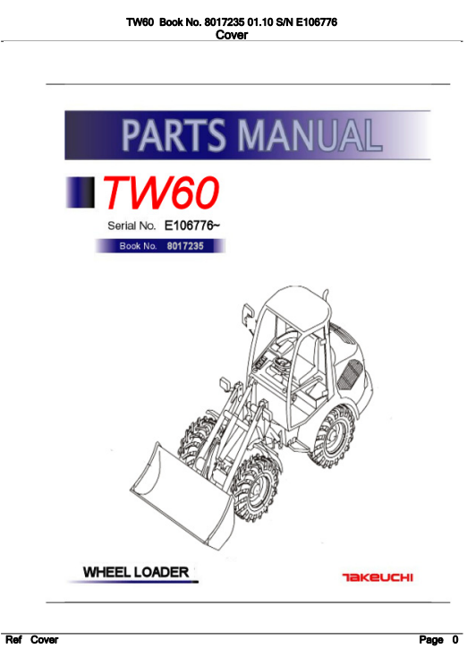Parts manual for Takeuchi TW60 Wheel Loader, detailing components and assembly instructions for maintenance and repairTakeuchi TW60 Wheel Loader Parts Manual