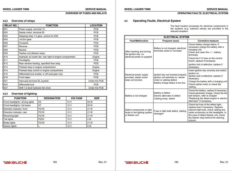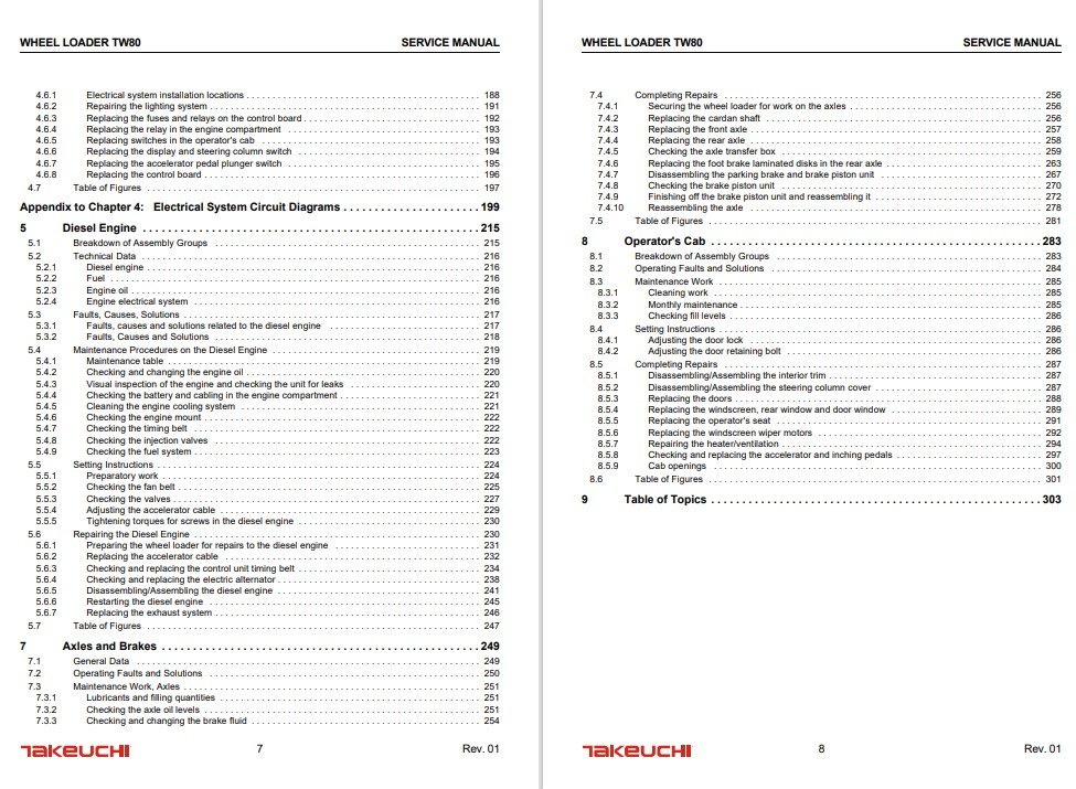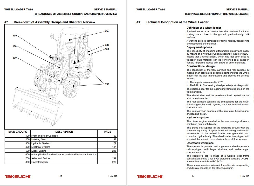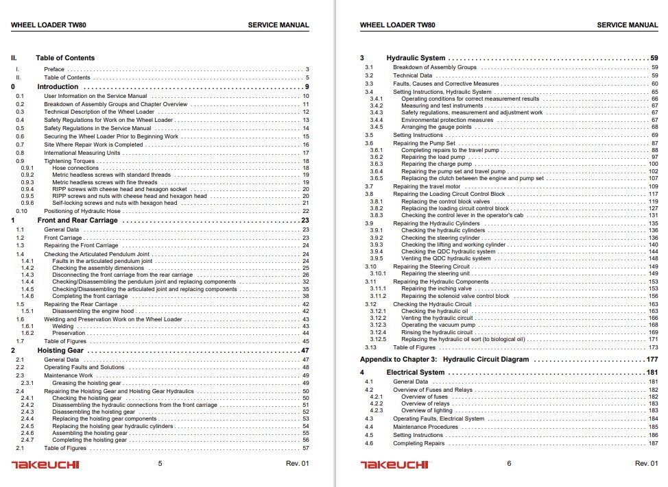 Service Repair Manual for Takeuchi TW80 Wheel Loader, showcasing diagrams and maintenance instructionsTakeuchi TW80 Wheel Loader Service Repair Manual