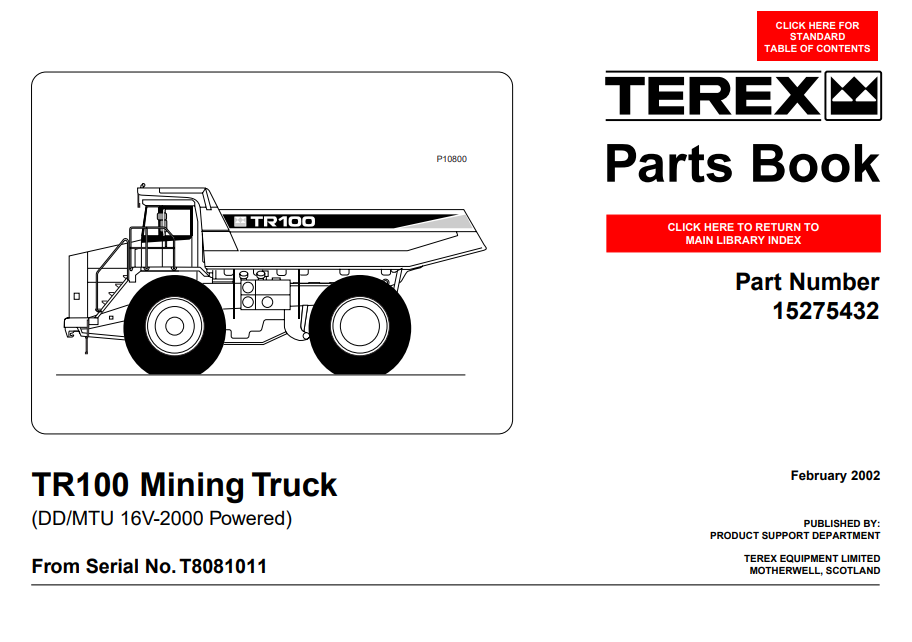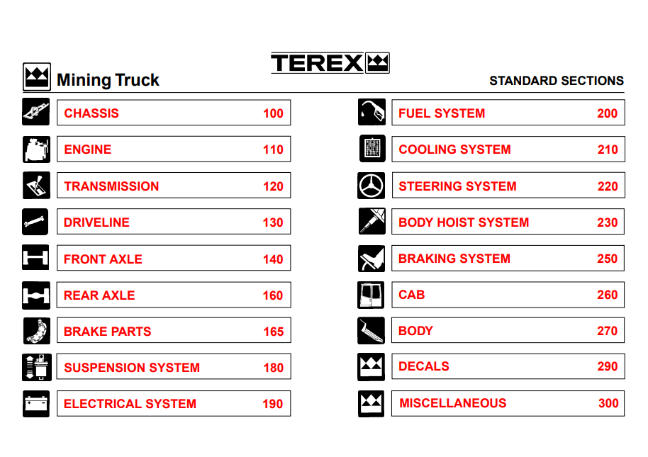 With This Original Factory Parts Manuals The Technician can easily find any Part Number and Correct Part encountered in the operation of your Terex Mining Truck Models of :