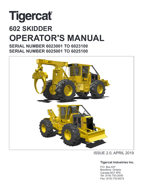Package include Tigercat 602 Skidder Operator’s Manual