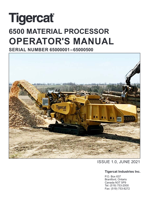 Tigercat 6500 Material Processor Operator’s Manual
