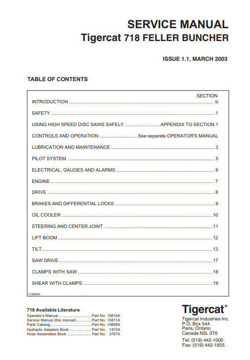 Tigercat 718 Feller Buncher Service Repair Manual