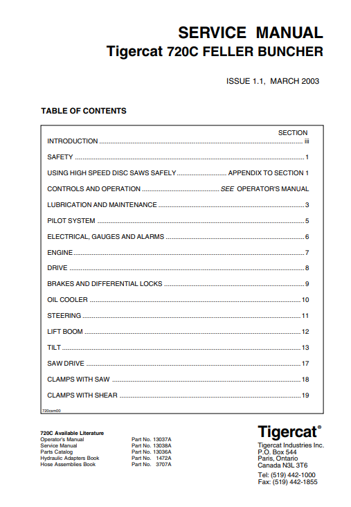 Tigercat 720C Feller Buncher Service Repair Manual