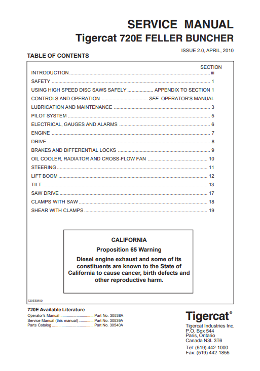 Tigercat 720E Feller Buncher Service Repair Manual