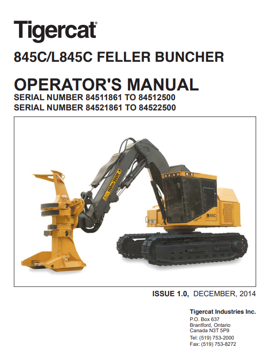 Tigercat 845C, L845C Feller Buncher Operator’s Manual