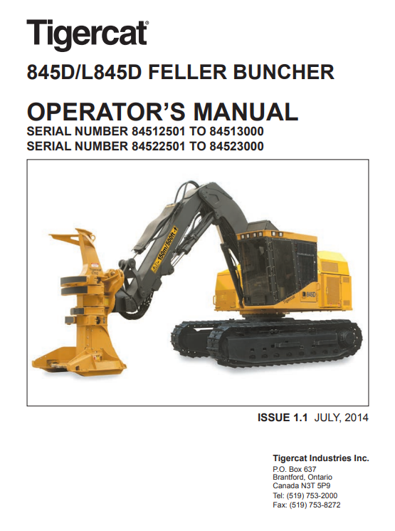 Tigercat 845D, L845D Feller Buncher Operator’s Manual