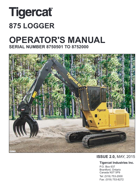 | Package include | Tigercat 875 Logger Operator’s Manual |