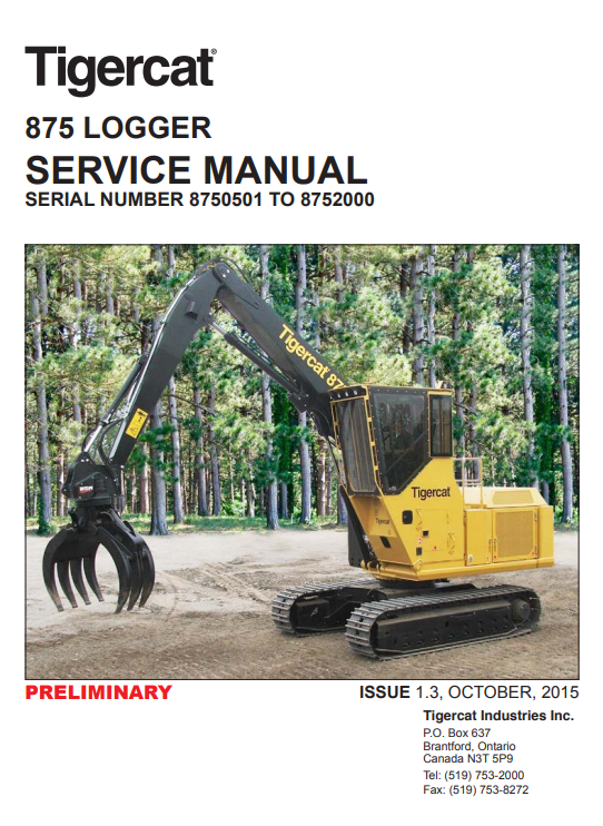 The Tigercat 875 Logger Service Repair Manual is an essential resource for maintaining and repairing your logging equipment. This comprehensive guide provides detailed instructions, diagrams, and troubleshooting tips to ensure optimal performance and longevity of your Tigercat 875. With clear, step-by-step procedures, you can confidently tackle repairs and maintenance tasks, saving time and reducing downtime. Invest in this manual to enhance your operational efficiency and keep your machinery running smoothly